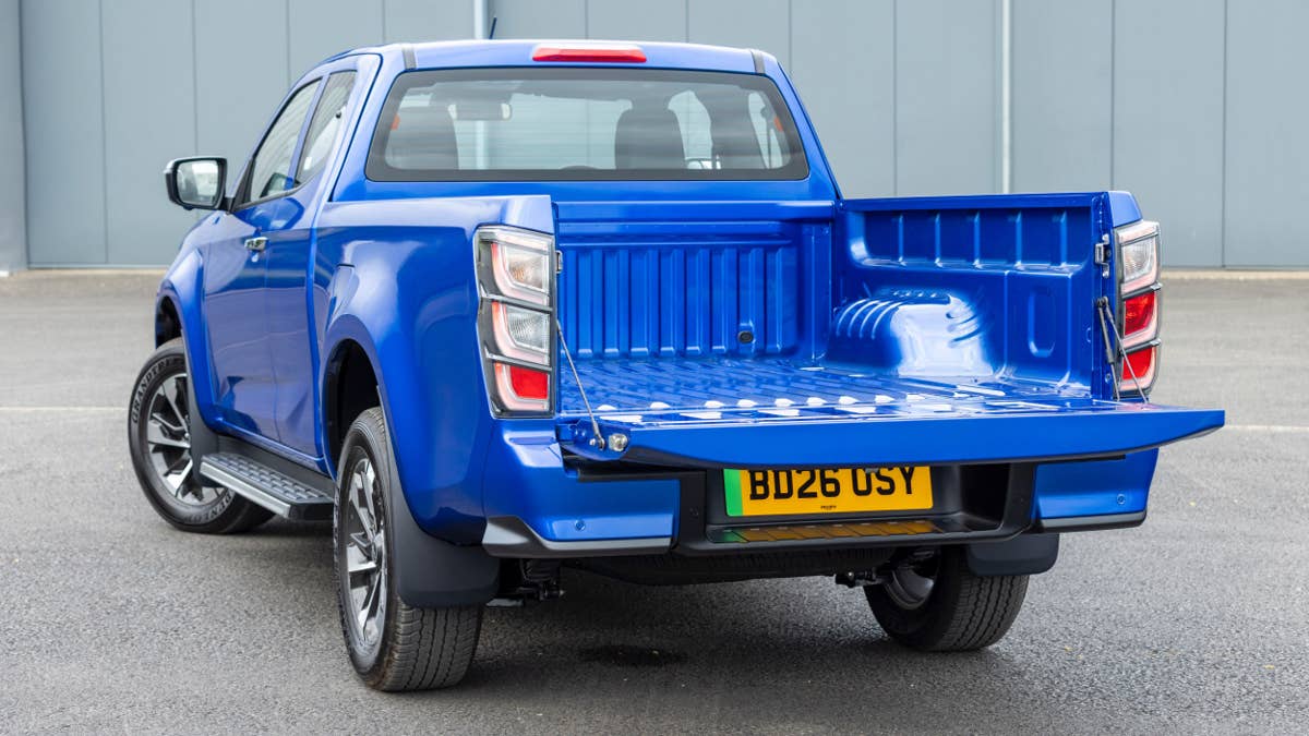 O bom do D-Max EV é que ele não sacrifica o material da picape em prol da eletrificação. É tão capaz quanto seu irmão movido a diesel, tornando-se a primeira picape comercial totalmente elétrica no Reino Unido a oferecer uma carga útil de mais de 1 tonelada métrica (2.204 libras), o que é significativamente melhor que o Carga útil de 1.576 libras da Hilux BEV.
