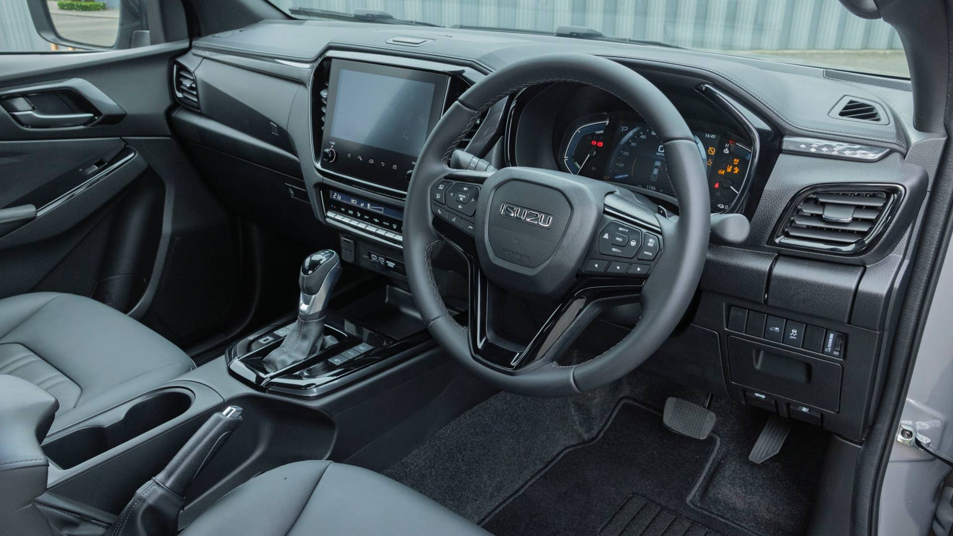 O equipamento padrão do novo Isuzu D-Max EV inclui interior em couro / tecido de alta qualidade, controle de temperatura de zona dupla, bancos aquecidos, sensores de estacionamento dianteiros e traseiros, faróis bi-LED e display de informações do motorista de 7 polegadas. Todos os modelos vêm com garantia de bateria de oito anos e 125.000 milhas.